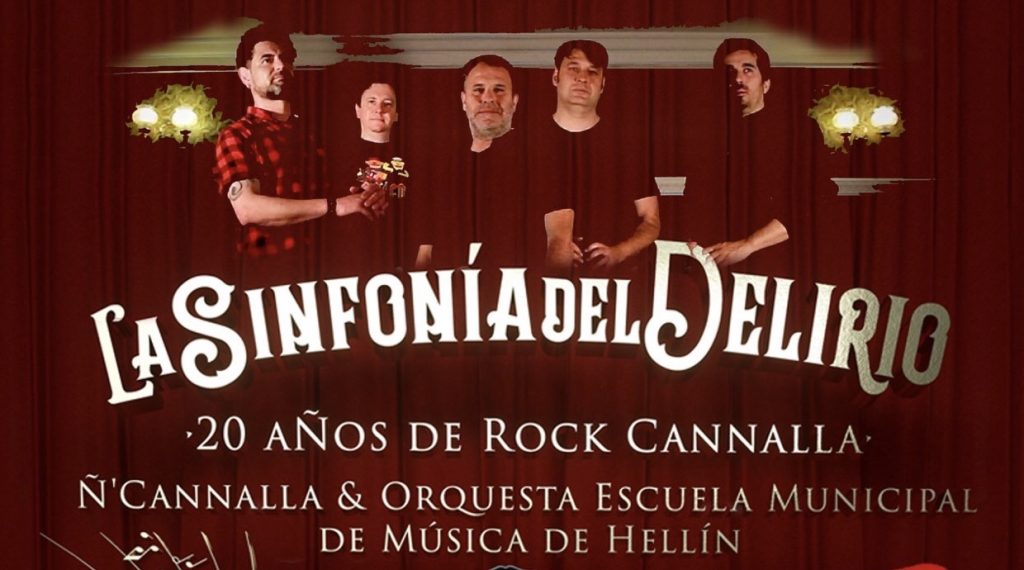 Así los espectadores que acudan al teatro pondrán disfrutar de un espectáculo único en el escenario: a la banda más longeva de la música hellinera, como son los Ñ´ Cannalla, y los alumnos de la Escuela Municipal de Música, que pondrán en escena un concierto que han denominado “La Sinfonía del Delirio: 20 años de Rock Cannalla”.