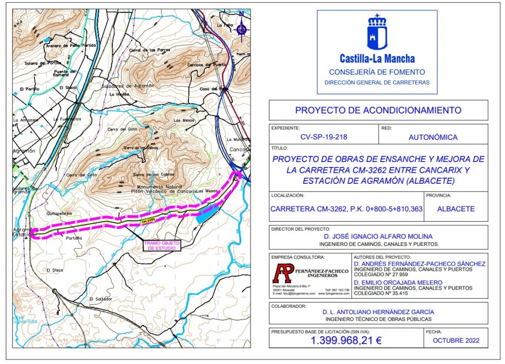 A través la información ofrecida por la consejería de Fomento de la Junta de Comunidades de Castilla-La Mancha, se conoce que se ha llevado a cabo la expropiación forzosa de los terrenos colindantes dentro del proyecto de la Dirección General de Carreteras, de ensanche y mejora de la carretera CM-3262, entre Cancarix y la Estación de Ferrocarril de Agramón, con lo cual ha experimentado un importante avance.
