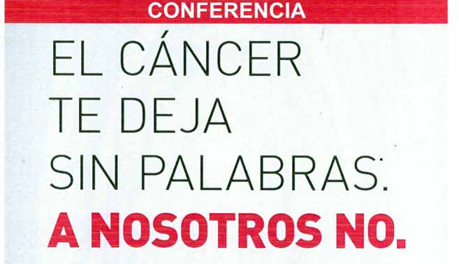 Para mañana, miércoles, día 28 de octubre, la Asociación Española Contra el Cáncer ha organizado una charla con el lema “El cáncer te deja sin palabras. A nosotros no” a cargo de Maite Martínez, Psicóloga de la aecc, y Juan Valiente, Jefe de Cirugía General del Hospital Comarcal de Hellín.
