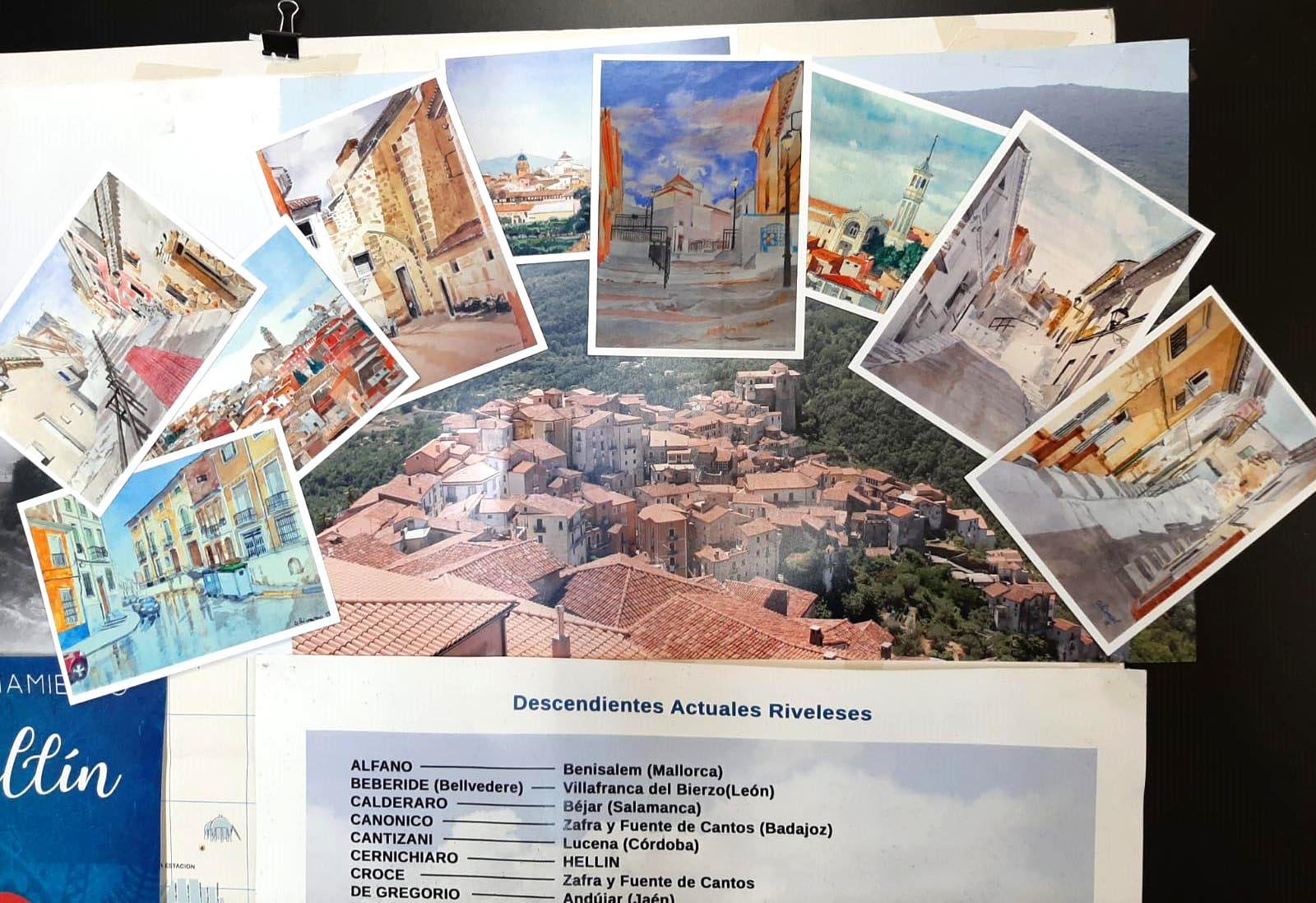 Una de estas actividades consistía en el intercambio de mensajería, un intercambio que sí se ha podido realizar a través de unas postales que van ilustradas con diferentes calles y rincones de nuestra localidad, gracias a las imágenes digitalizadas cedidas de las acuarelas del hellinero, José Martínez Olivares. Ya que no se ha podido realizar el intercambio físico con los escolares se propuso desde el Comité de Hermanamiento con Rivello el envío de una postal por cada miembro del Comité y de la Corporación Municipal.