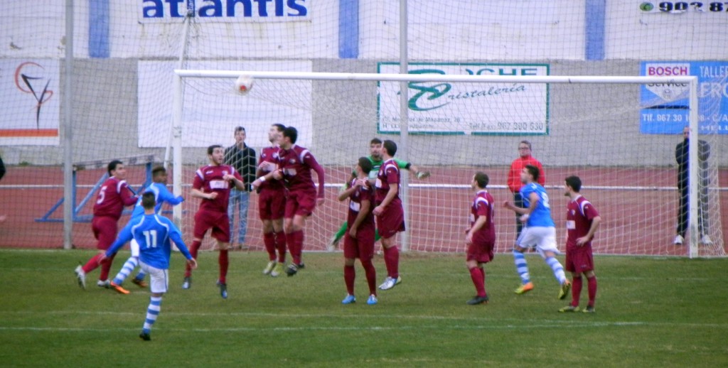 Dos avisos dieron los almanseños y al tercero sería la vencida, en cuanto al gol que, al final, le valió la victoria a los de Mario Simón, a raíz de un saque de esquina que, en segunda instancia, volvió a prolongar Pablo García al segundo palo donde emergió un ex del Hellín, Rumbo, quien de magnífico testarazo no perdonó.