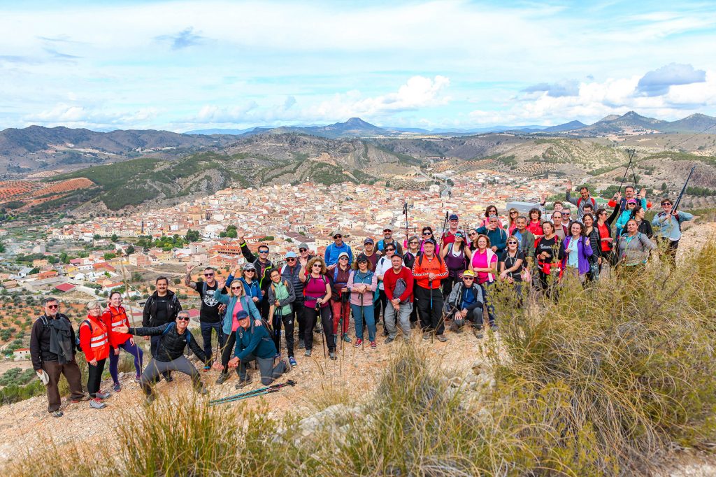 El itinerario llevó a los senderistas por diversas vías de escalada hasta llegar a La Encantada, continuando por una pista acondicionada con barandillas de madera que culminó en los repetidores de Elche y Villares. Desde estas alturas, los participantes disfrutaron de unas vistas inmejorables del pueblo y sus alrededores, incluyendo la emblemática peña de San Blas.