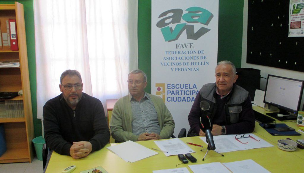 Con el fin de dar cuenta de la postura de la Federación de Asociaciones de Vecinos de Hellín (FAVE) sobre lo asunto de las paradas de los trenes de pasajeros por nuestra ciudad,se convocó a una rueda de prensa en su sede del Centro Social del Carmen, donde junto al presidente de la entidad, Juan Fernández y el recién nombrado presidente de Honor, Juan Roldán, se encontraba, el portavoz de la Plataforma Ciudadana por el tren para Hellín y su Comarca, José Antonio Maciá.