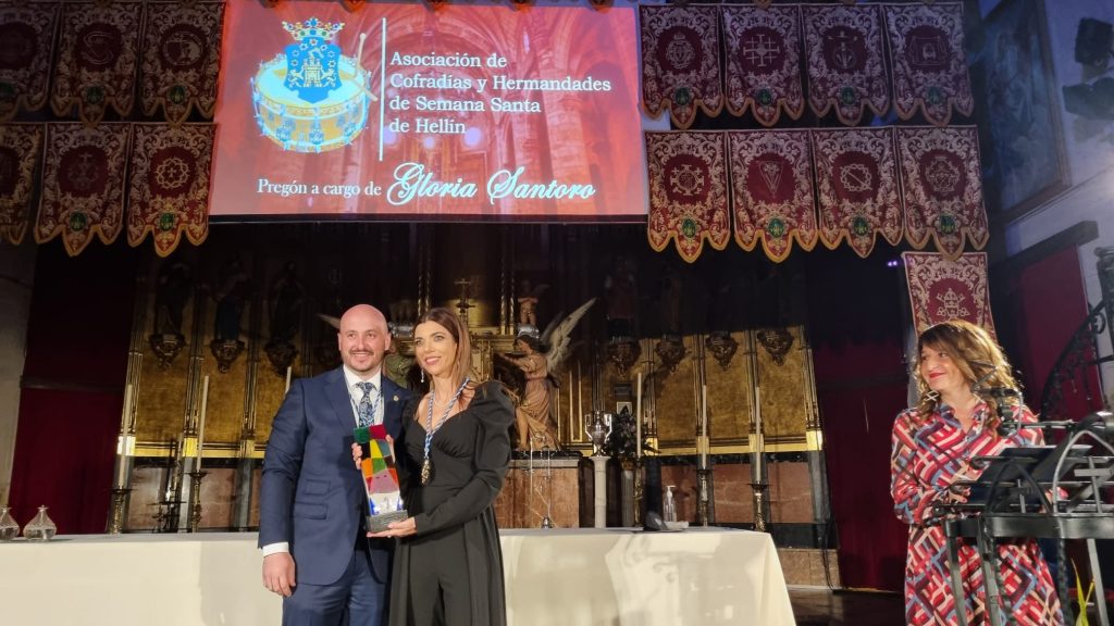 Gloria Santoro pregonó la Semana Santa y reivindicó la esencia “tan especial y auténtica” de sus procesiones y tambores y, en definitiva, las personas que hacen posible revivir cada año una fiesta “única” que, con el “esfuerzo” de tantas generaciones, “sigue a salvo y es una de las más hermosas de España, por lo que invitó a todas las personas a que visiten una ciudad “absolutamente hospitalaria”.