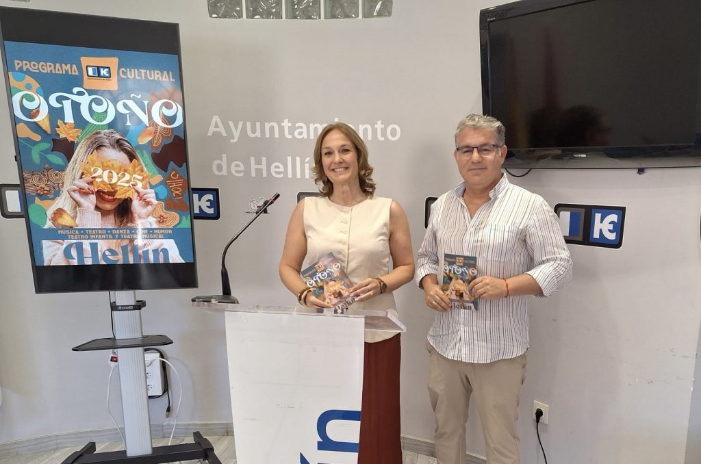 La concejala de Cultura, Dolores Valencia, acompañada por el alcalde de Hellín, Manuel Serena, presentó en rueda de prensa la programación cultural de otoño 2025, que llenará de actividades la ciudad entre los meses de octubre y enero. Los abonos para los espectáculos del Teatro Victoria salen a la venta el 8 de septiembre.