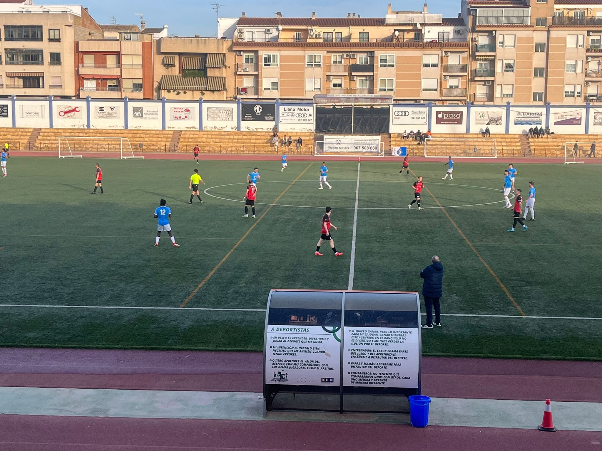 El U.D. Mota del Cuervo logró anotar en los últimos minutos del partido, cerrando el marcador con el gol del honor, pero sin alterar el control que el Hellín mostró durante todo el encuentro.