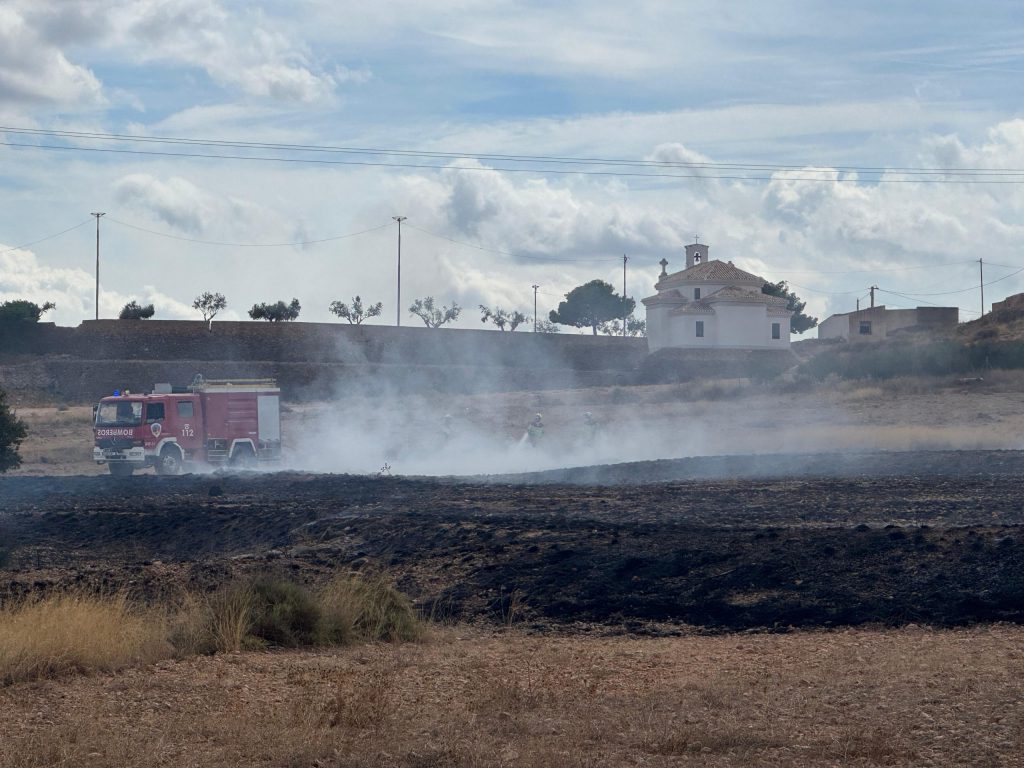 Un incendio declarado en la tarde de hoy, alrededor de las 14:00 horas, ha generado gran expectación en la zona del Calvario de Hellín, justo detrás de la ermita.
