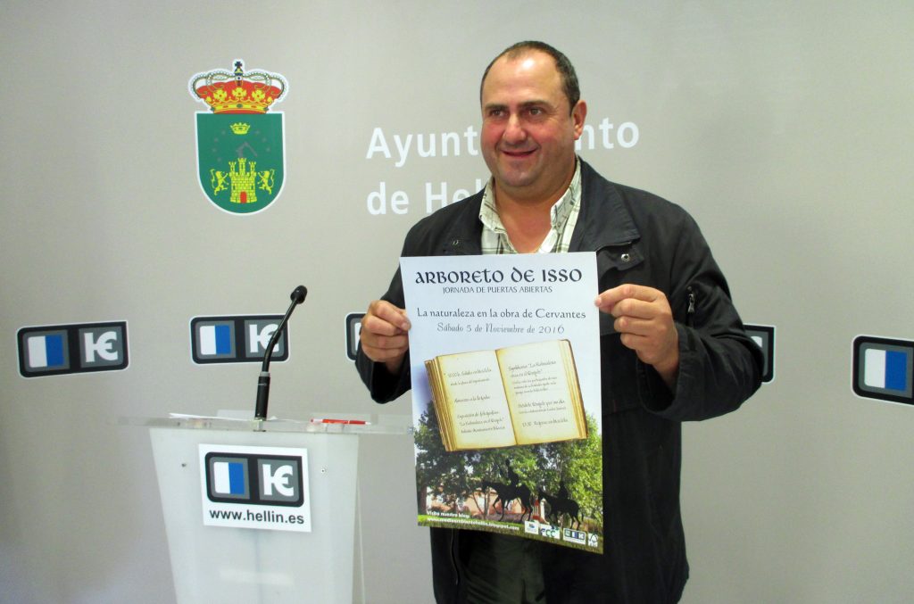 El concejal de Medio Ambiente, Julián Martínez, se reunía con los medios de comunicación para dar todo tipo de detalles de la jornada de Puertas Abiertas que se iba a llevar a cabo el próximo sábado, día 5 de noviembre, en el Arboreto de Isso, como otra de las actividades programadas con motivo del IV Centenario de la Muerte de Miguel de Cervantes, con el fin, indicó de unir la literatura con la naturaleza en la obra cervantina y en especial en su novela cumbre Don Quijote de la Mancha.