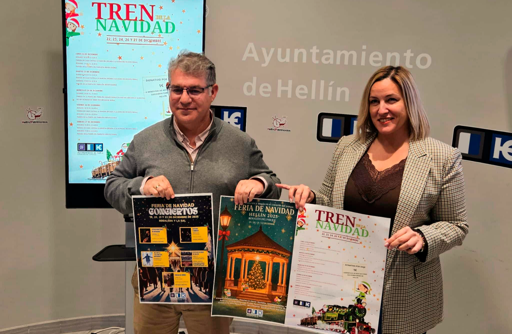 El Ayuntamiento de Hellín, a través de la Concejalía de Comercio, ha presentado este martes la programación de la Navidad 2025, que incluirá la Feria de la Navidad y el Tren de la Navidad, dos propuestas de ocio pensadas para dinamizar la ciudad y ofrecer actividades para todos los públicos durante las fechas navideñas.