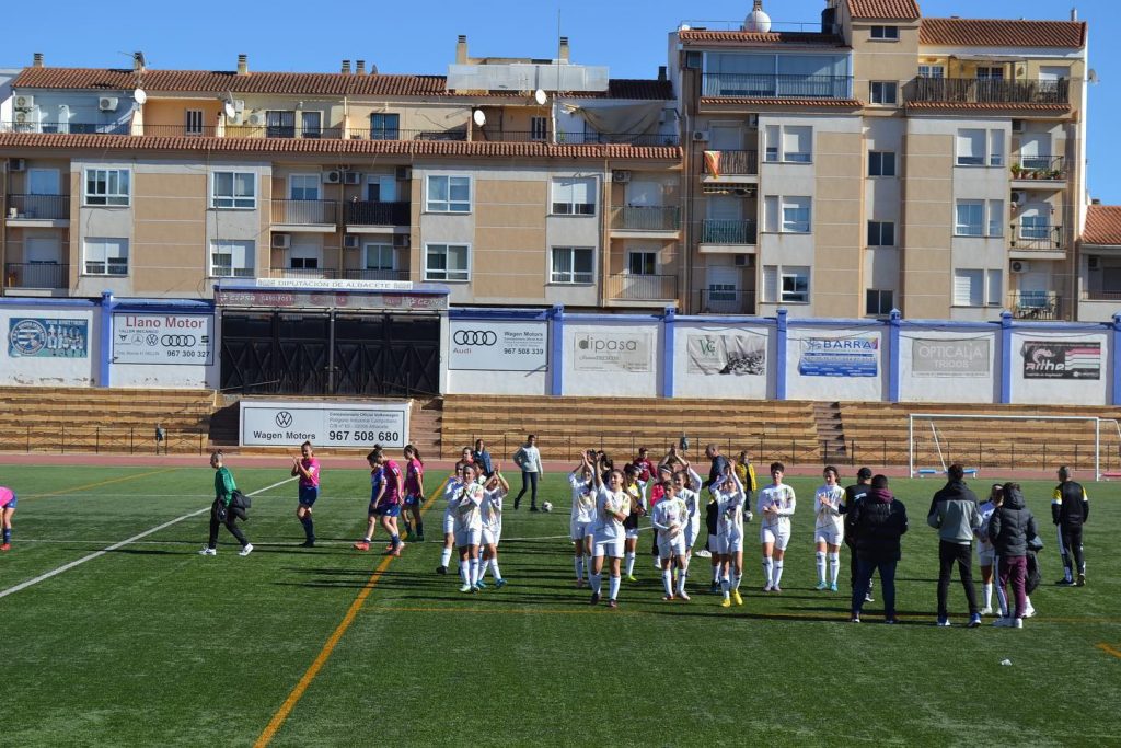 Ya con algunos cambios sobre el campo de Hellín se lanzó a tumba abierta en busca del empate que lograba, tras ocasiones de María Moreno y Jojhana, antes del cuarto de hora, por parte de María Ruiz, en su primer tanto del presente ejercicio. A partir de ahí el cuadro de Jesús Martínez y Fernanda González emprendió un asedio sin descanso, hasta que María Moreno- el primero de penalti- lograba otro nuevo doblete- ha marcado en las seis últimas jornadas y ya suma trece tantos-que volteaban el marcador hasta el 4 – 2 definitivo, ya que las oportunidades de Cristina, Enma, Inés y Salu no se reflejaron en el marcador.