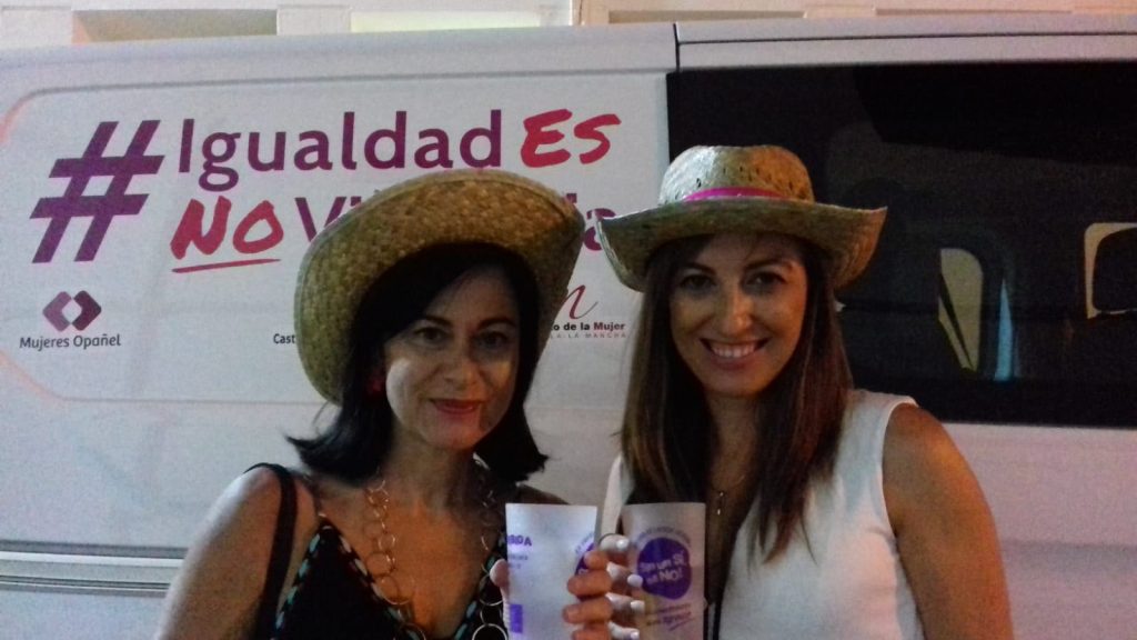 La campaña “Sin un Sí es No” y las misiones pedagógicas por la igualdad han comenzado su itinerario por la región en las fiestas de la pedanía hellinera de Agramón, una de las 50 localidades y núcleos de población de Castilla-La Mancha donde se instalarán estos puestos formativos para prevenir la denominada “violación en cita”.