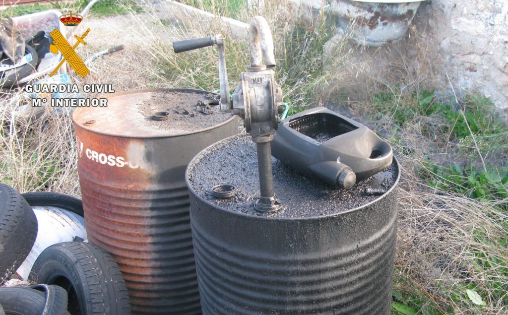 Durante la inspección la Guardia Civil localizó baterías, aceite de motor y neumáticos, todos ellos usados, almacenados de forma incorrecta