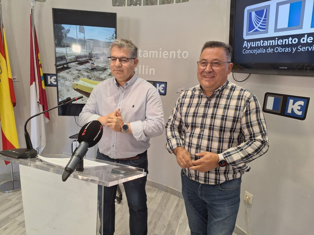 El alcalde de Hellín, Manuel Serena, acompañado por el concejal de Obras y Servicios Municipales, Juan Díaz, ha comparecido esta mañana en la sala de prensa de la Casa Consistorial para dar información sobre los recientes retrasos en los trabajos de mantenimiento y mejora que realiza el personal municipal, ante las quejas recibidas por parte del vecindario.