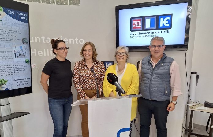 La presentación tuvo lugar en la sala de prensa del Ayuntamiento con la participación de la concejala de Patrimonio Histórico, Dolo Valencia; la técnico de Turismo, Marian Martínez; la presidenta de Cáritas Interparroquial, Mari Carmen; y el alcalde de Hellín.