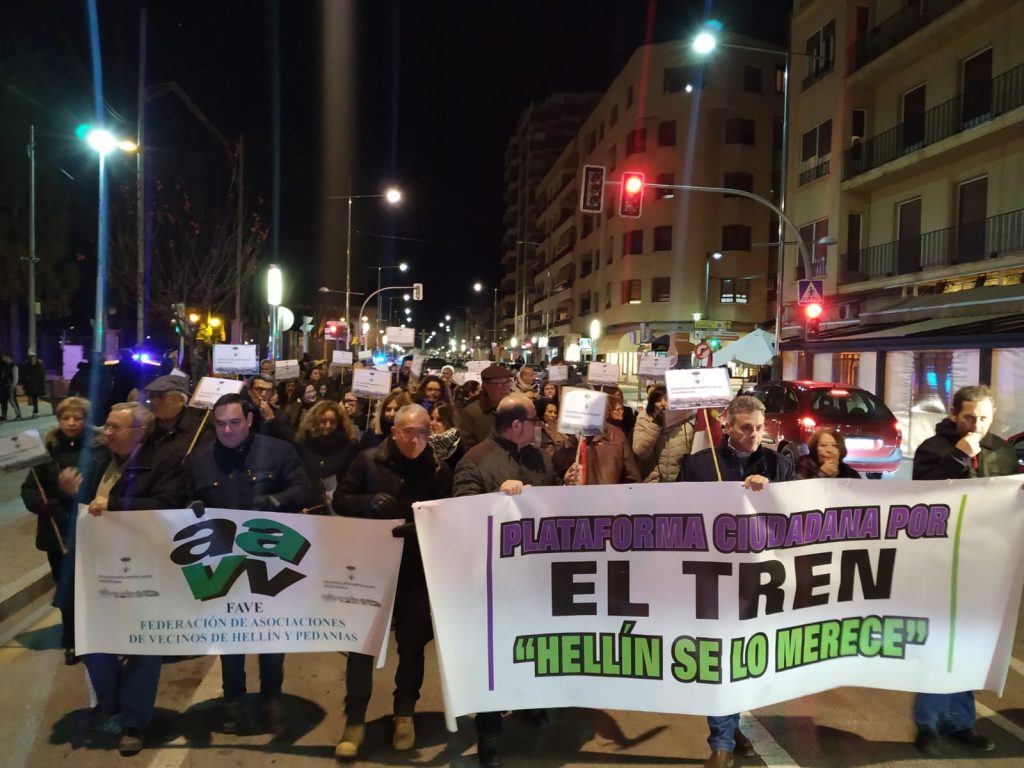 En la tarde noche del pasado sábado se llevó a cabo la primera concentración del presente año de la Plataforma Ciudadana por el tren para Hellín y su comarca, convocada en los soportales del Recinto Ferial, para continuar con una marcha por la Gran Vía hasta llegar a la Estación de Ferrocarril.