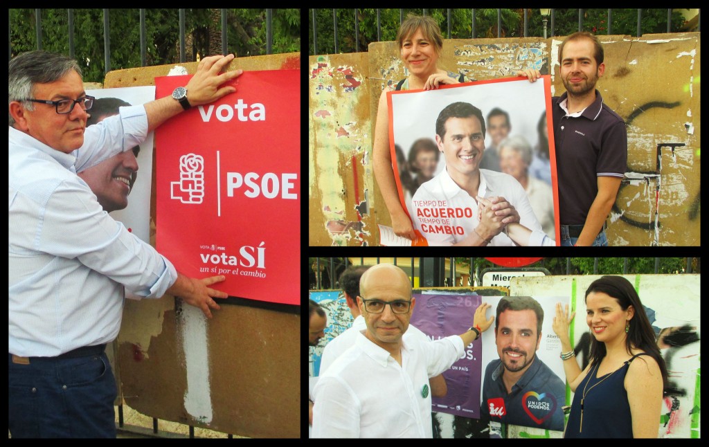 En la noche del jueves, los grupos políticos que participaran en las próximas Elecciones Generales, con la excepción del Partido Popular, que ha renunciado a esta maniobra, llevaban a cabo para facilitar a los medios de comunicación su labor una pegada virtual de carteles en la valla de la Rosaleda del Parque Municipal.