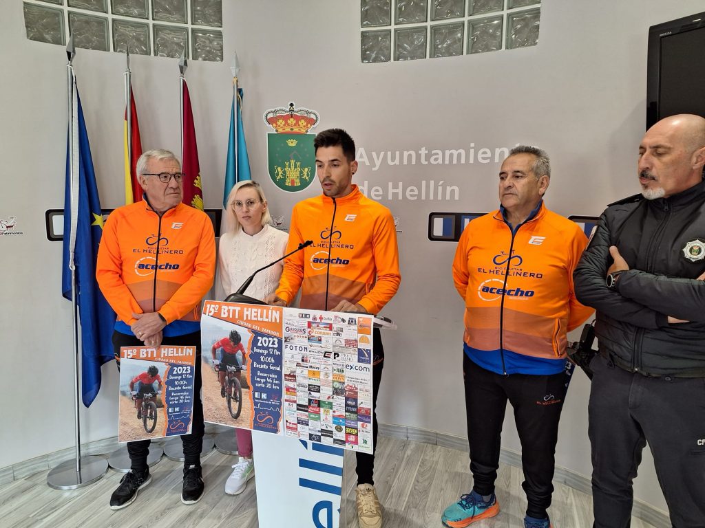 La concejala de Deportes, Mirian Maestre, junto a los miembros del Club Ciclista “Ciudad del Tambor,” encabezados por el corredor Alberto López, y el jefe de la Policía Local, Francisco J. Paterna, presentó la 15ª edición de la BTT “Hellín, Ciudad del Tambor,” que se llevará a cabo el próximo domingo, día 12.