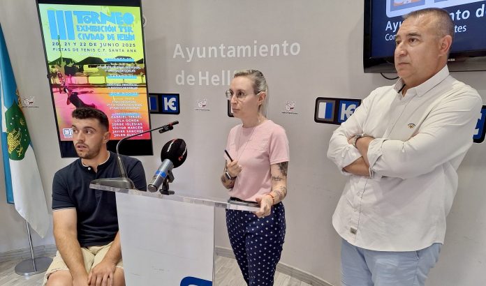 Para presentar el III Torneo de Exhibición de Tenis sobre Silla de Ruedas, llegaban a la sala de prensa del Ayuntamiento de Hellín la concejala Miriam Maestre, el jugador hellinero Gabriel Teruel y su entrenador Antonio Moreno. El evento tendrá lugar los días 20, 21 y 22 de junio en las pistas renovadas del Complejo Deportivo Santa Ana, con entrada gratuita y la participación de destacados jugadores como Lola Ochoa, Víctor Marcén, Javier Sánchez y Julen Álvarez.