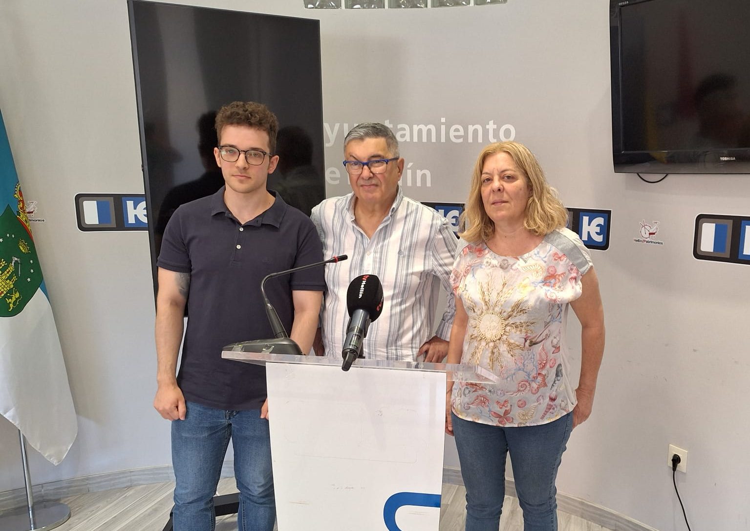 La profesora de inglés de la Escuela de Idiomas de Hellín y los alumnos, José López Serrano y José Antonio Rodríguez, después de intentar tomar la palabra en la sesión plenaria ordinaria del Ayuntamiento de Hellín, correspondiente al mes de julio, llevaron a cabo una rueda de prensa para hacer oír sus quejas por la “gravísima situación” en que vive esta entidad de enseñanza.