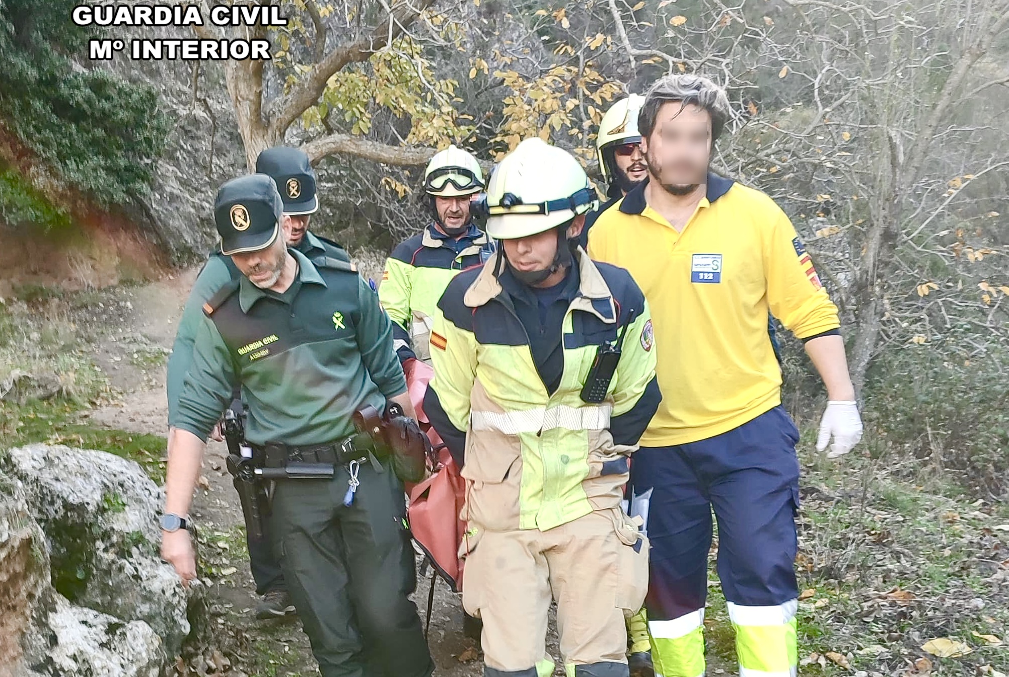 El incidente fue reportado al 062, movilizando a una patrulla de la Guardia Civil. Al llegar, los agentes localizaron a la víctima con una fractura en la pierna en una zona de difícil acceso. Para evacuarla, los equipos de rescate improvisaron puentes con tablones para cruzar el río Bogarra y superar las barreras naturales que complicaban el traslado.