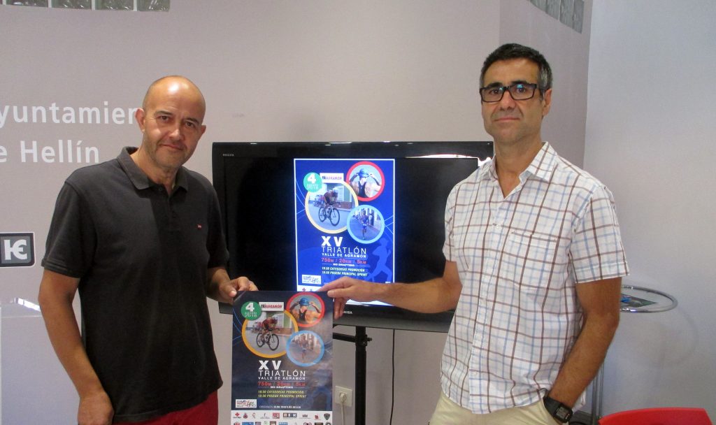 El concejal de Deportes, Francisco López, al que acompañaba el presidente del Club Triatlón de Hellín, Amando Martínez, presentaban las características de la XV edición de la Triatlón Valle de Agramón que se llevará a cabo el próximo sábado, día 4 de agosto, en sus dos versiones, promoción y prueba principal sprint.