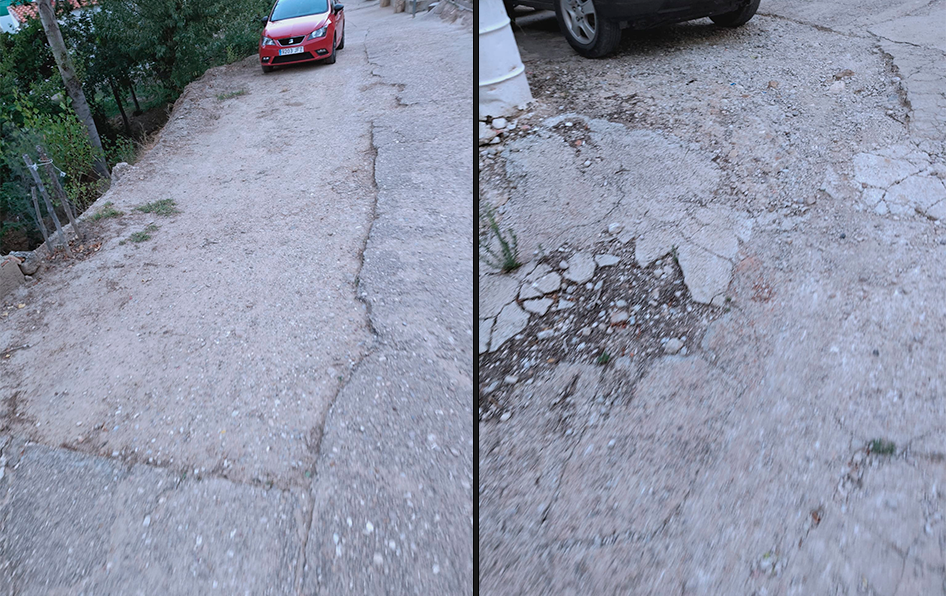 Las calles interiores presentan grietas y socavones, lo que incrementa el peligro de caídas, especialmente entre personas mayores o con movilidad reducida. A ello se suma la falta de iluminación, que convierte cada noche en un escenario inseguro.