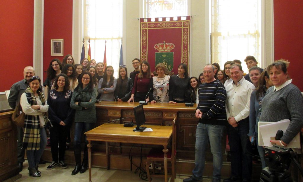 En la mañana de hoy, el salón de sesiones de la Casa Consistorial se volvía a abrir para recibir a otro grupo de alumnos, en esta ocasión del Instituto Melchor de Macanaz de nuestra ciudad, junto a 11 estudiantes de la localidad italiana de Villacidro (Cerdeña), acompañados por dos profesores, con los que están llevando a cabo un intercambio lingüístico y cultural, dentro del proyecto Erasmus.